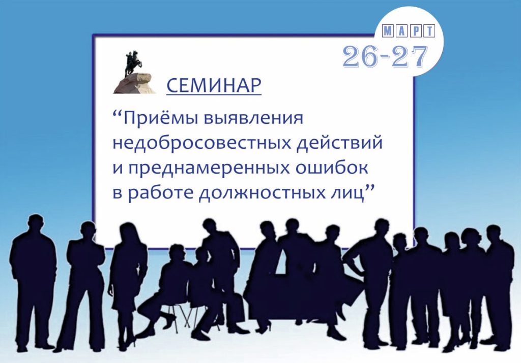 Приглашаем на семинар, где рассматриваться техника выявления фактов злоупотреблений и приёмы установления мошенничества, совершаемых должностными ответственными лицами. Встреча аудиторов и ревизоров состоится 26-27 марта в самом центре Санкт-Петербурга. Программа семинара подготовлена группой практиков, реально занятых в сфере независимого финансового контроля. Ведущий семинара — профессиональный ревизор-эксперт с многолетним опытом в контрольно-ревизионной работы.
